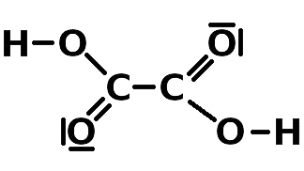 Oxalsäure besteht aus Sauerstoff, Wasserstoff und Kohlenstoff.